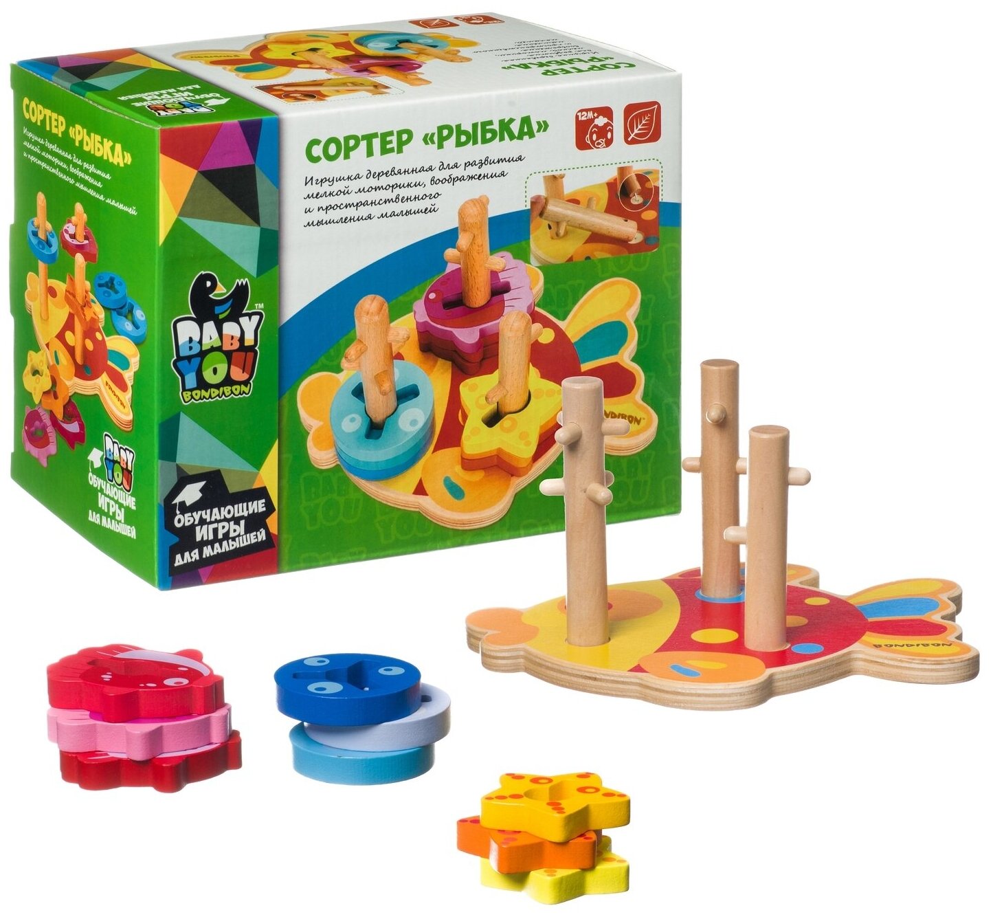 Сортер Bondibon из дерева «рыбка», BOX 23,2×13,2×18,5 см интересное: