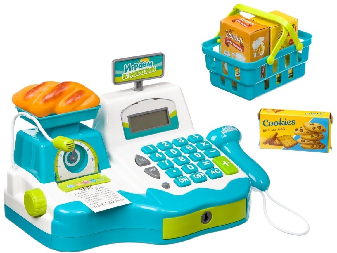 Купить Игровой набор Bondibon "Играем в магазин", с кассовым аппаратом, чековой лентой и аксессуарами (ВВ4123)