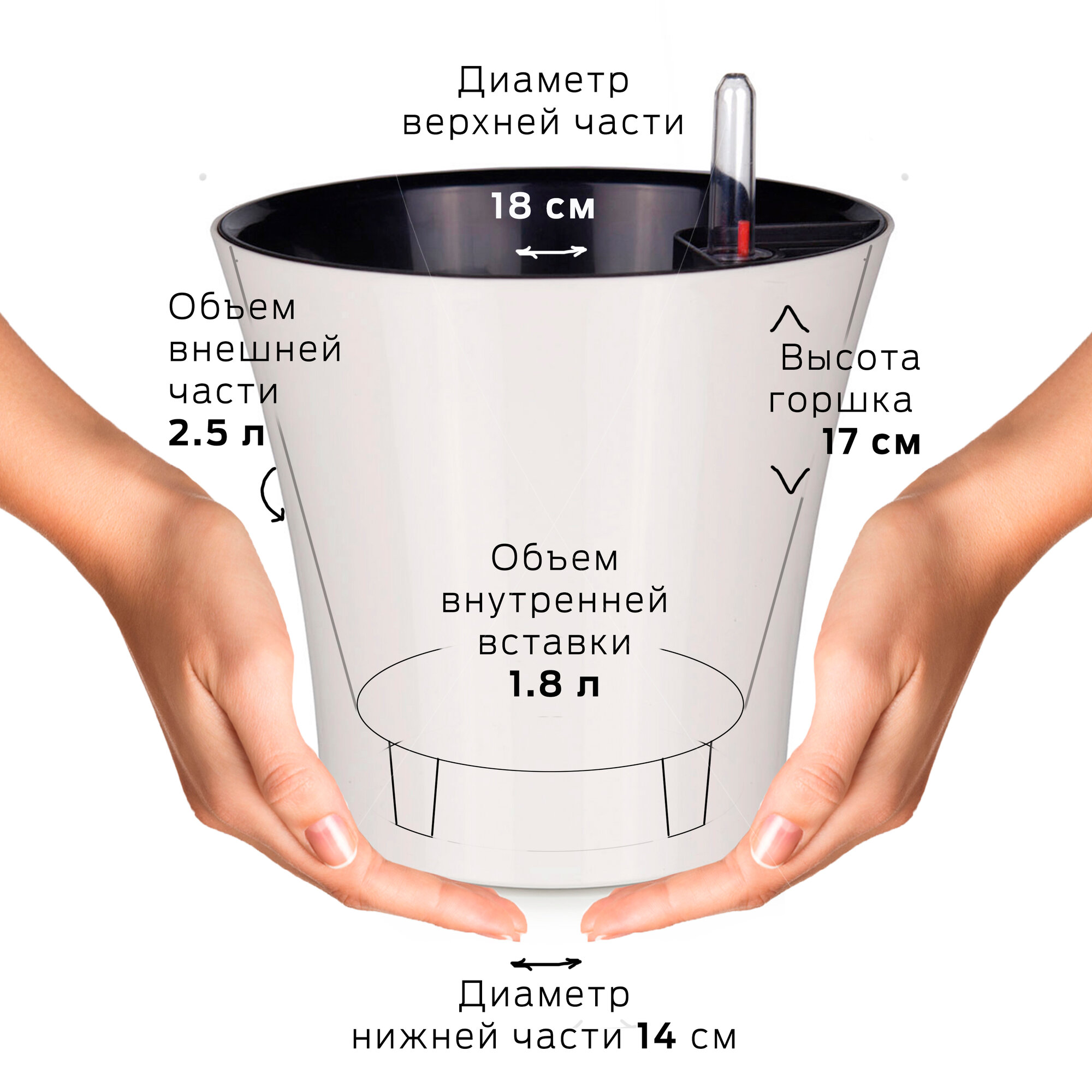 Кашпо с автополивом «Комфорт», 2,5 л (1,3 л), цвет белый