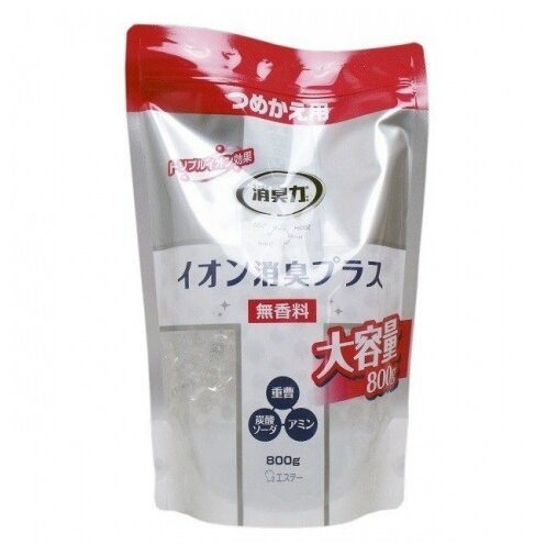 Купить ST SHOUSHUURIKI ион-эффект Поглотитель запахов для помещений без аромата, гелевый мягкая упак 800 гр.