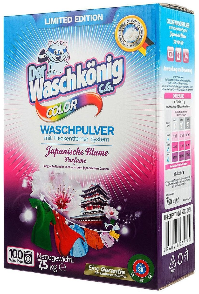 Купить Стиральный порошок для цветного 7,5 кг Der Waschkonig Color Японский цветок - 110 стирок, коробка (Германия)