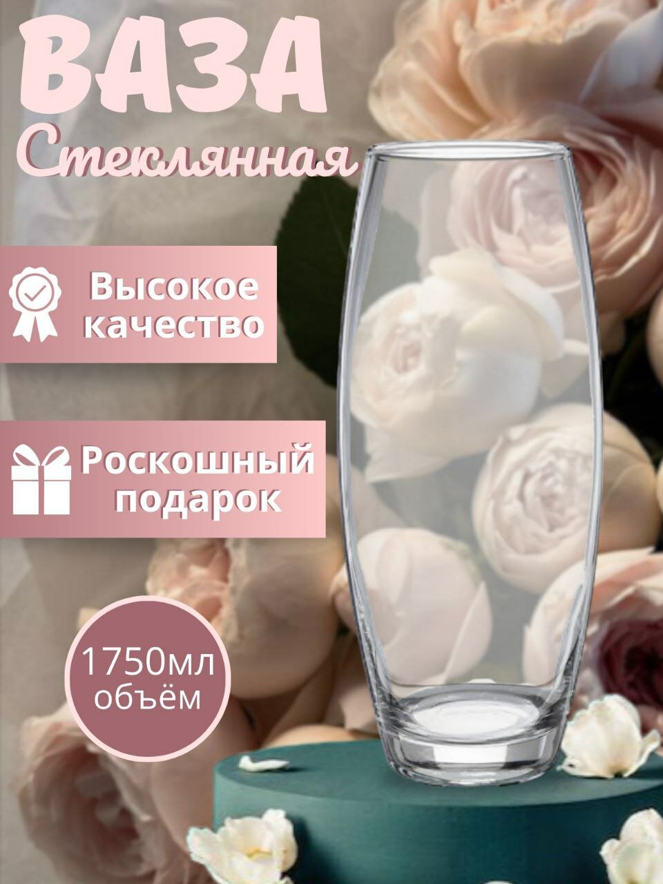 | Плюсы: | Классическая универсальная ваза. Не тонкая. |