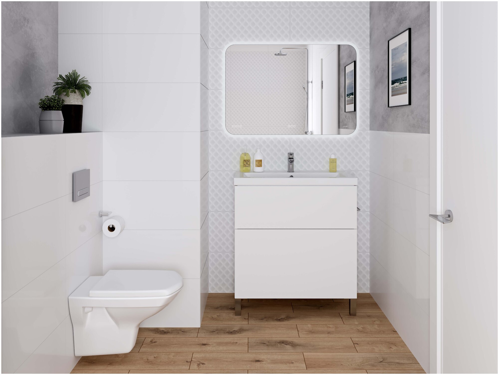 | Плюсы: | Красивое зеркало, без выпирающей рамы, её нет. Есть подсветка, очень яркая, при этом не слепит. Управление понятное, отклик моментальный. |