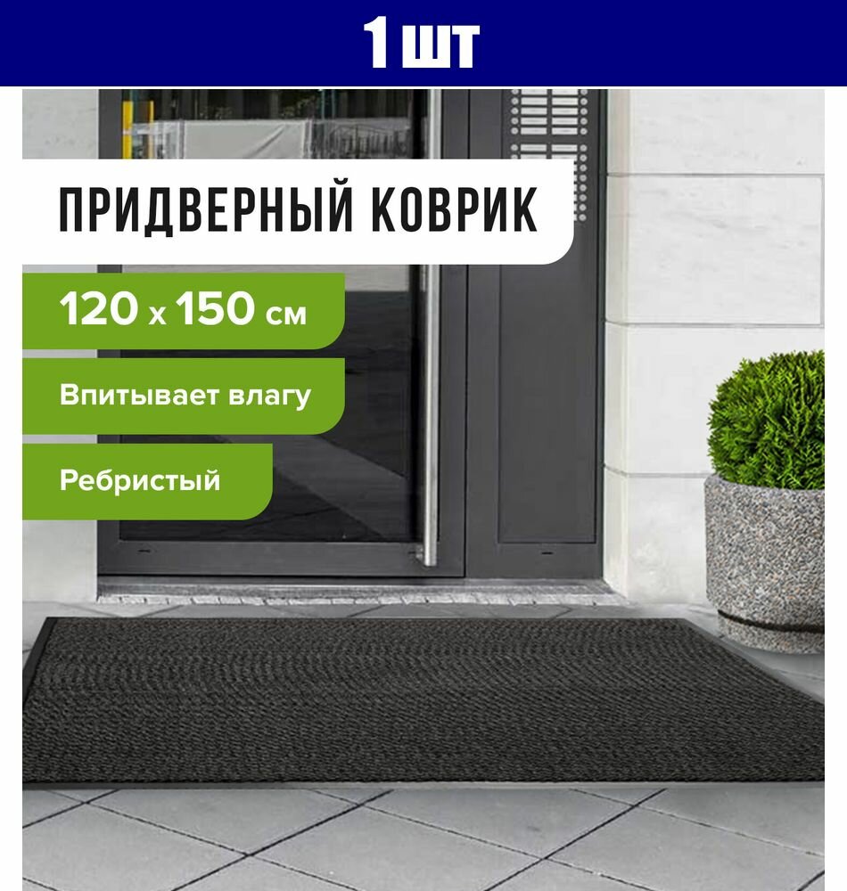 Коврик входной ворсовый влаго-грязезащитный LAIMA 120х150 см ребристый толщина 7 мм черный 602877 1 шт