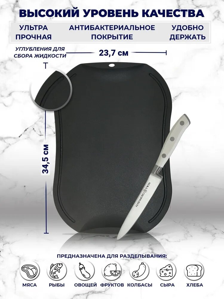 Доска Разделочная Hatamoto (JH-141DG), био-пластик, термопластичный полиуретан, темно-серый, размер 345x237x2.5мм