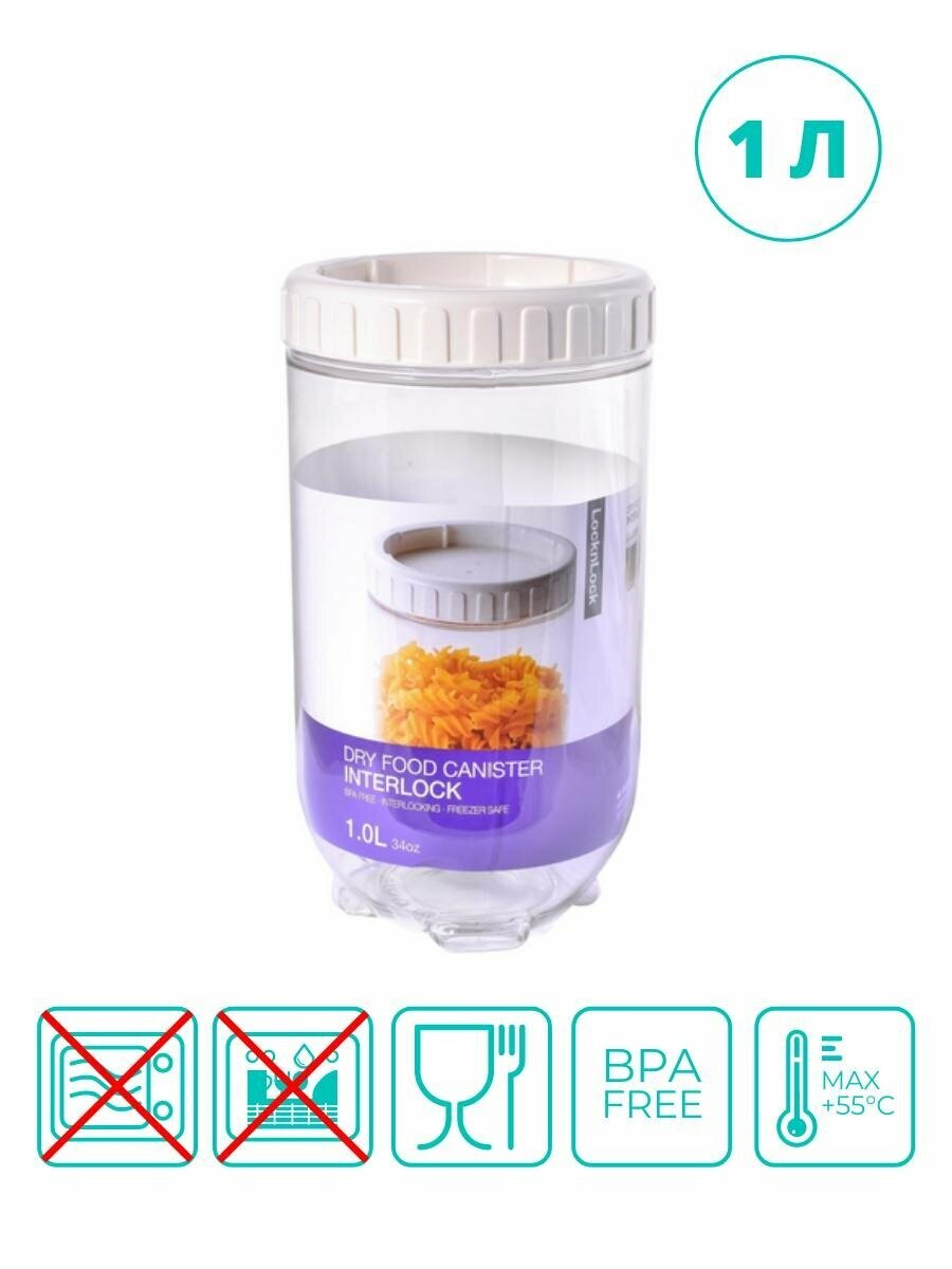 Купить Банка для хранения сыпучих продуктов LocknLock "Interlock", белый, 1 л.
