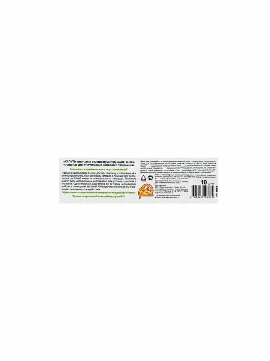 Капут Пластины от комаров 10шт. 4607043201874