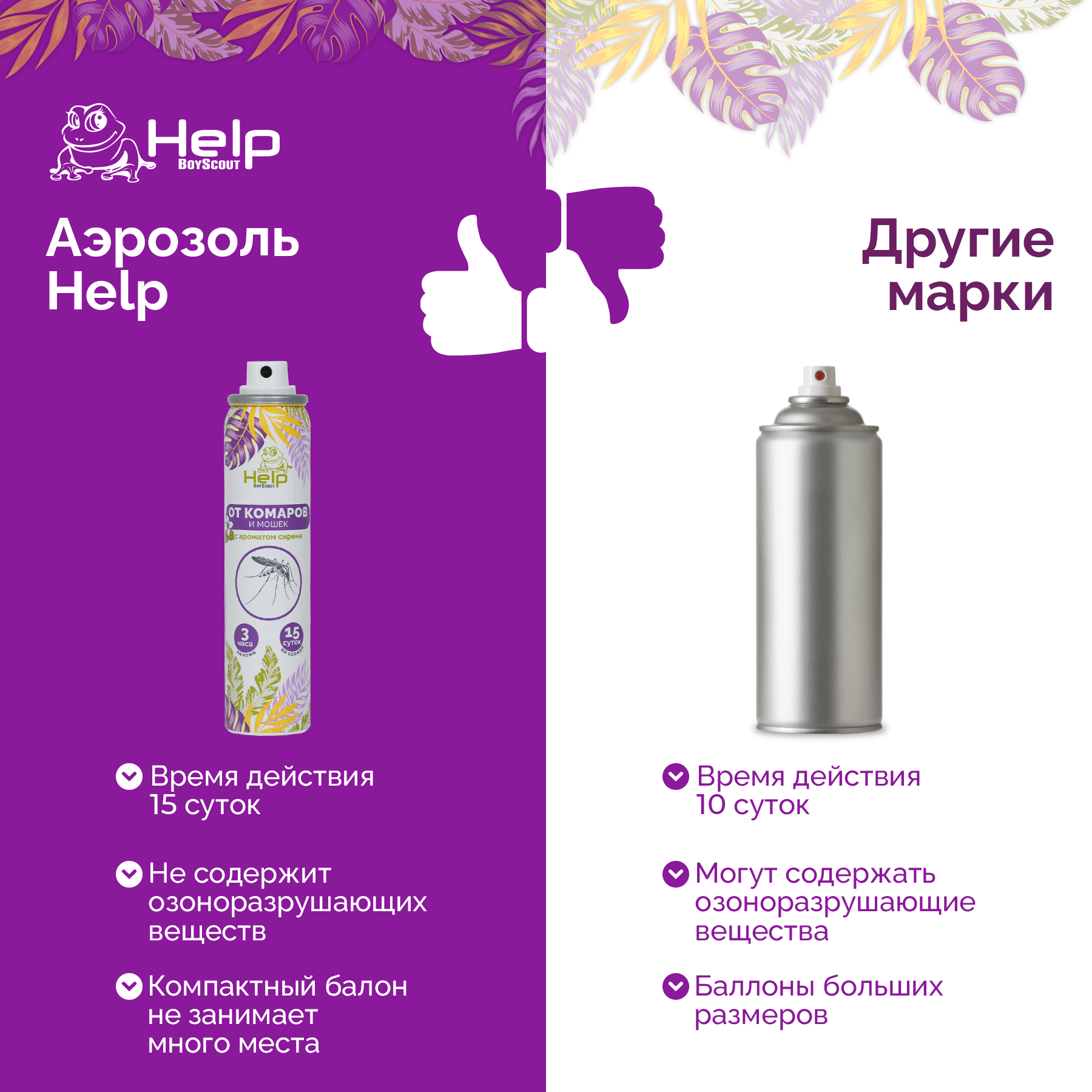 Репеллентный аэрозоль от комаров и мошек HELP Сирень, 75 мл 6 80218