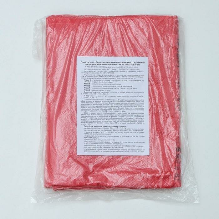 Мешки для мусора медицинские, комплект 20 шт., класс В (красные), 100 л, 60х100 см, 15 мкм, аквикомп
