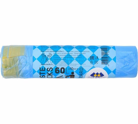 Купить Мешки для мусора MEULE Standard 60 л, 10 шт., голубой
