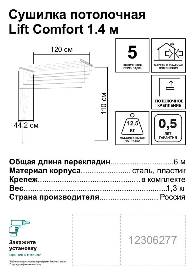 Сушилка для белья потолочная Zalger Lift Comfort 1,2 м 44,1х3,4 см интересное: