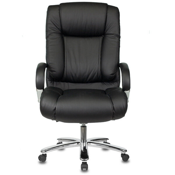 Кресло руководителя Бюрократ T-9925SL/BLACK, черный, кожа, крестовина хром (до 200кг)