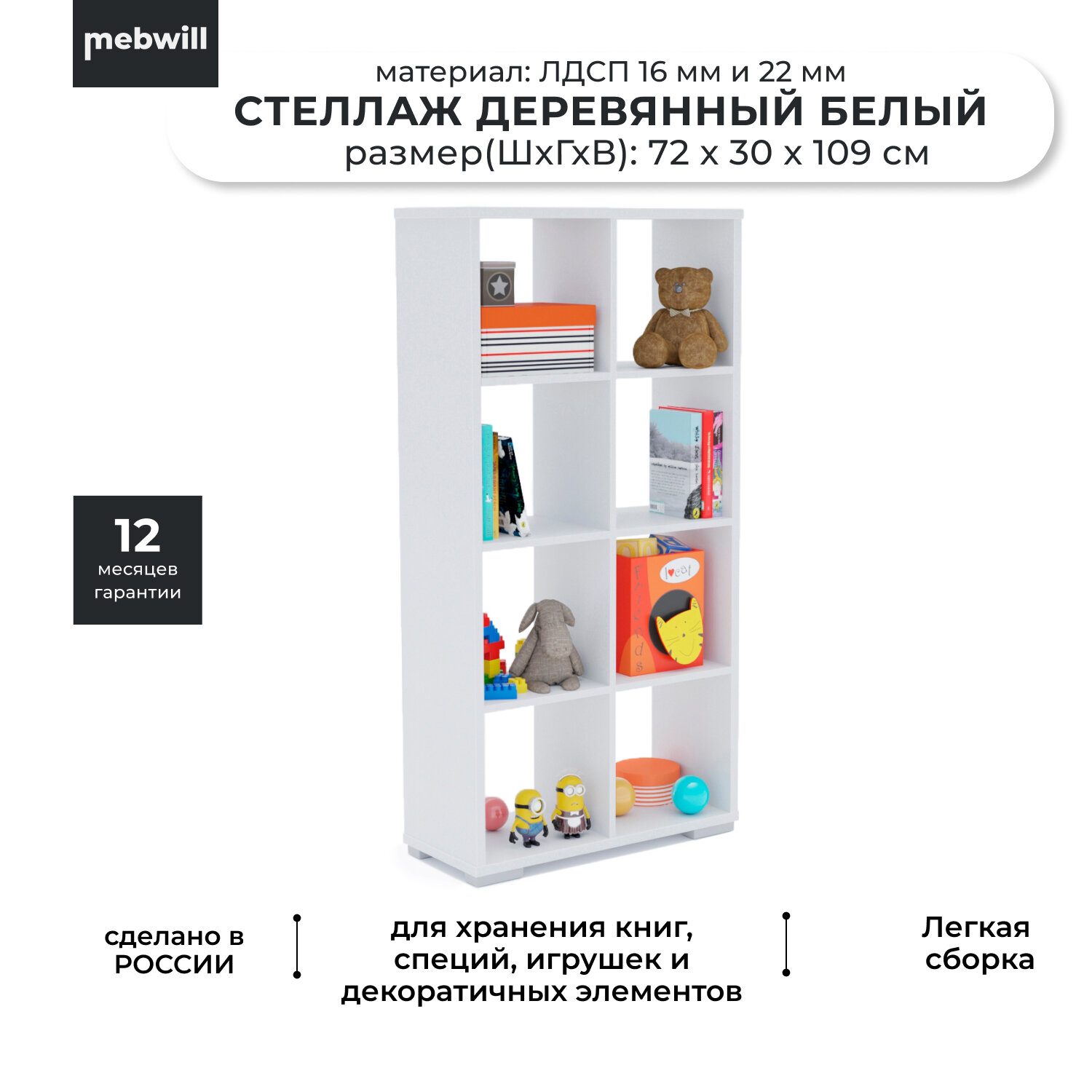 Стеллаж для книг и игрушек №4