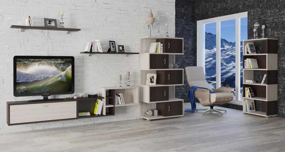 СохранитьСтеллаж Мэрдэс СБ-10-5 Венге/Карамель 700*300*1785 интересное: