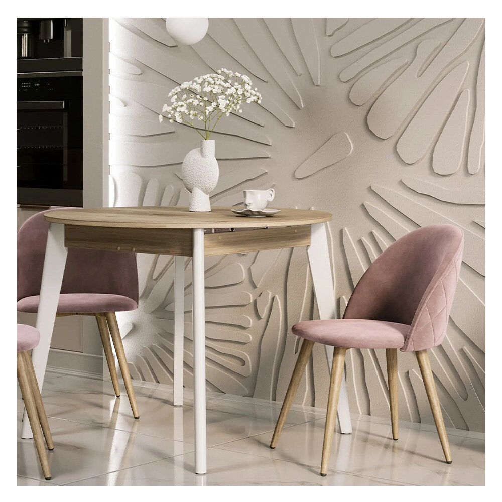 Стол Rondo 100-135x100 дуб/белый