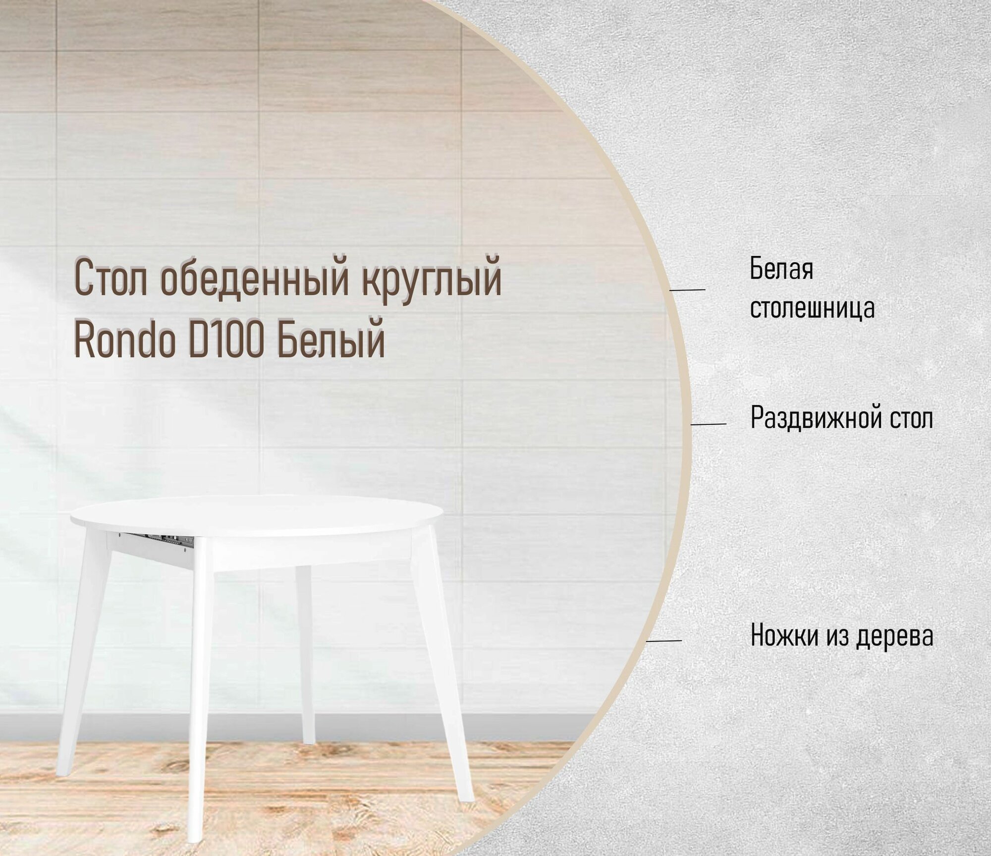 Стол STOOL GROUP Rondo диаметр 100 см белый, раскладывается до 135 см