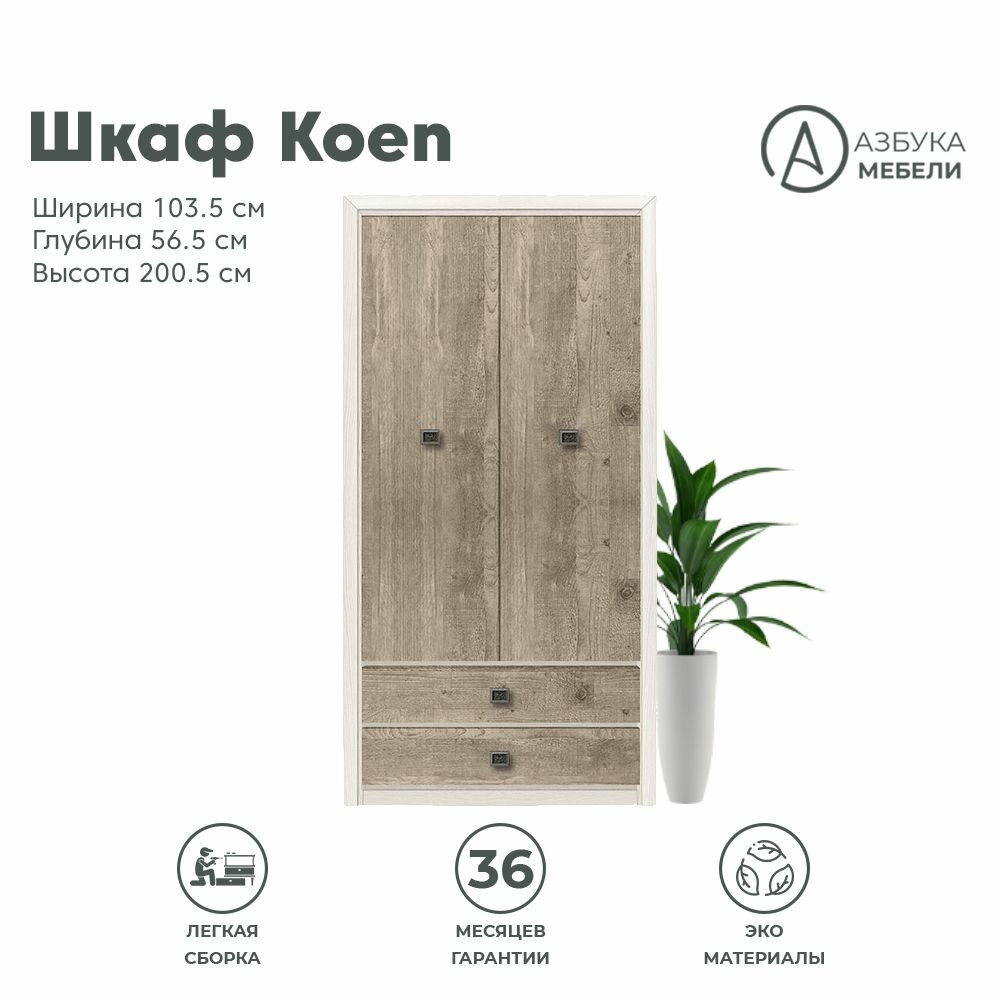 Шкаф БРВ Мебель коен SZF2D2S Ясень снежный/Сосна натуральная