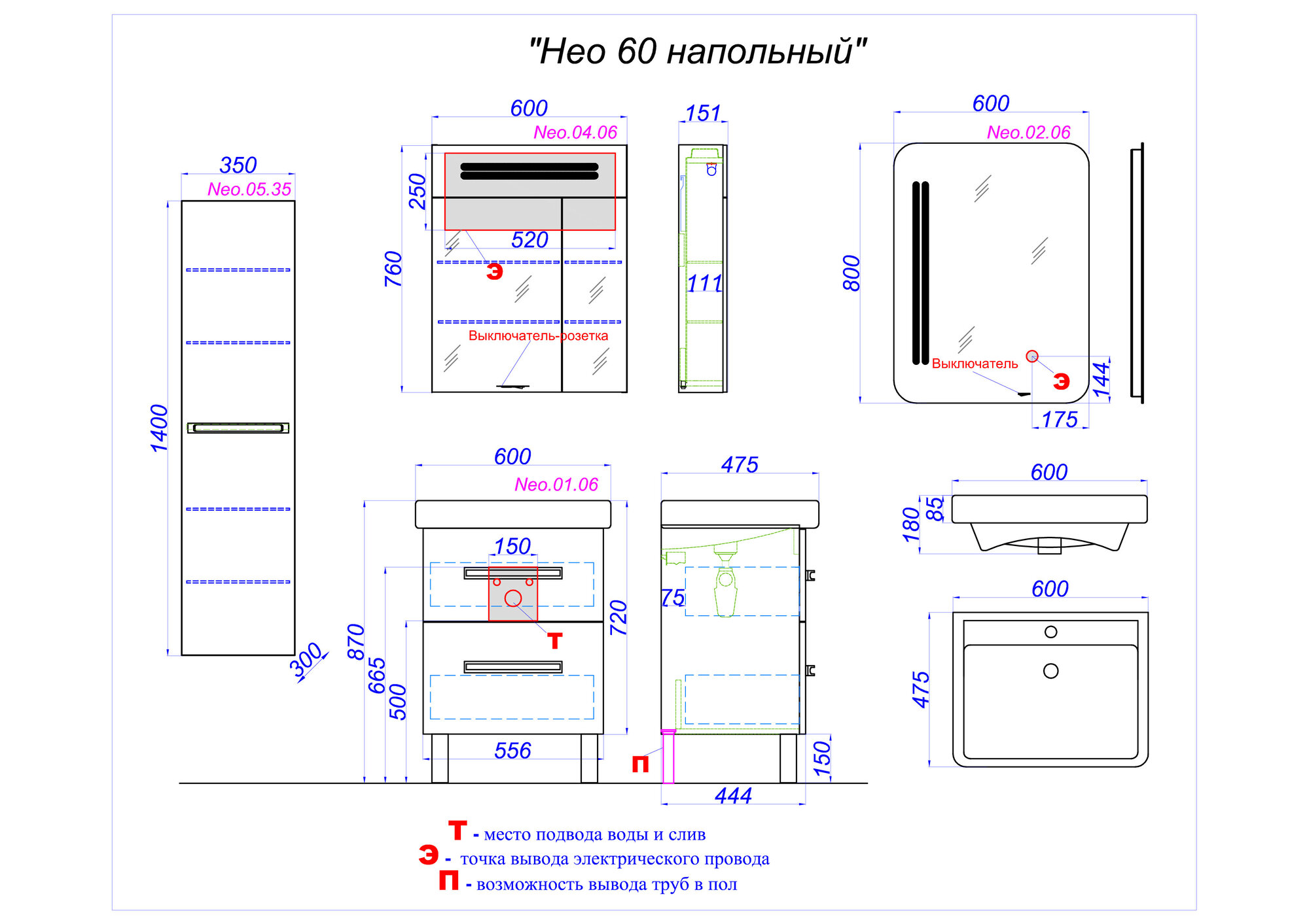СохранитьШкаф-зеркало 60 см, белый, Aqwella Нео Neo.04.06 интересное: