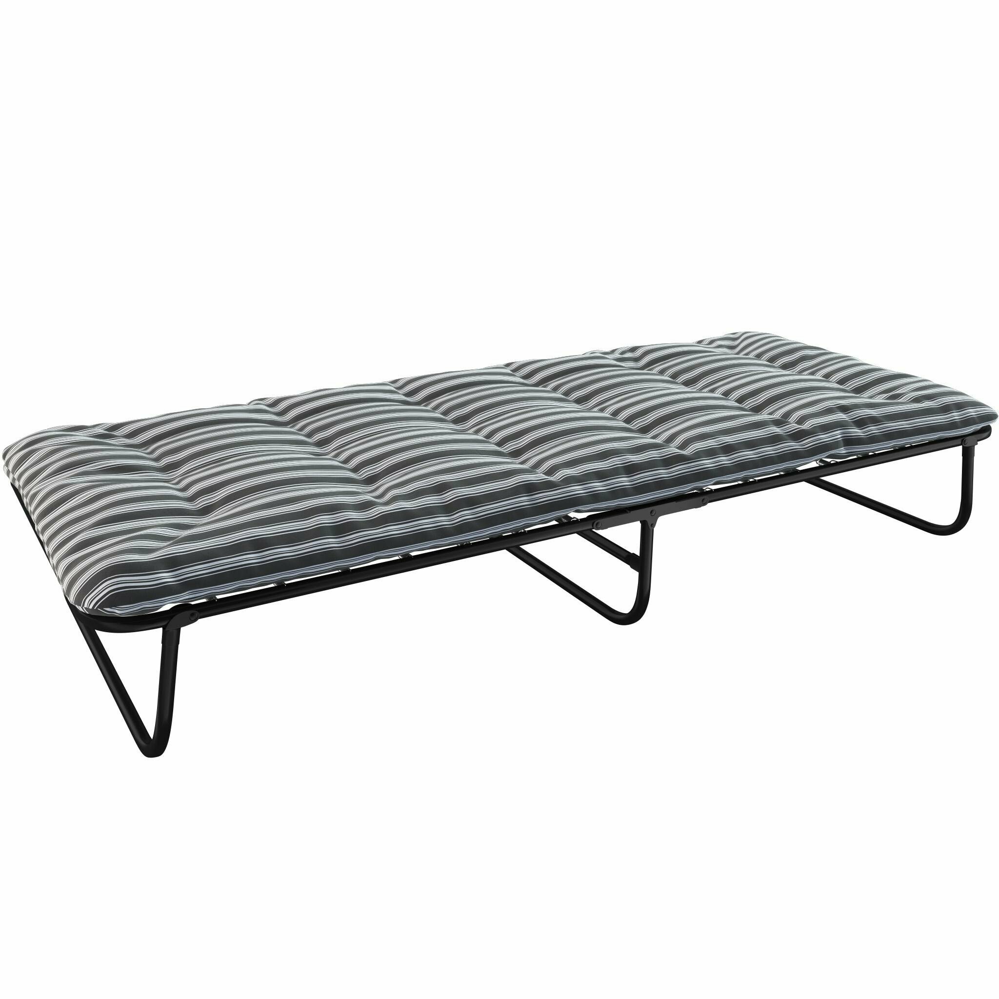 Для такой раскладушки неплохой матрас. В сложенном состоянии занимает немного места. На полочку можно что-нибудь положить. |