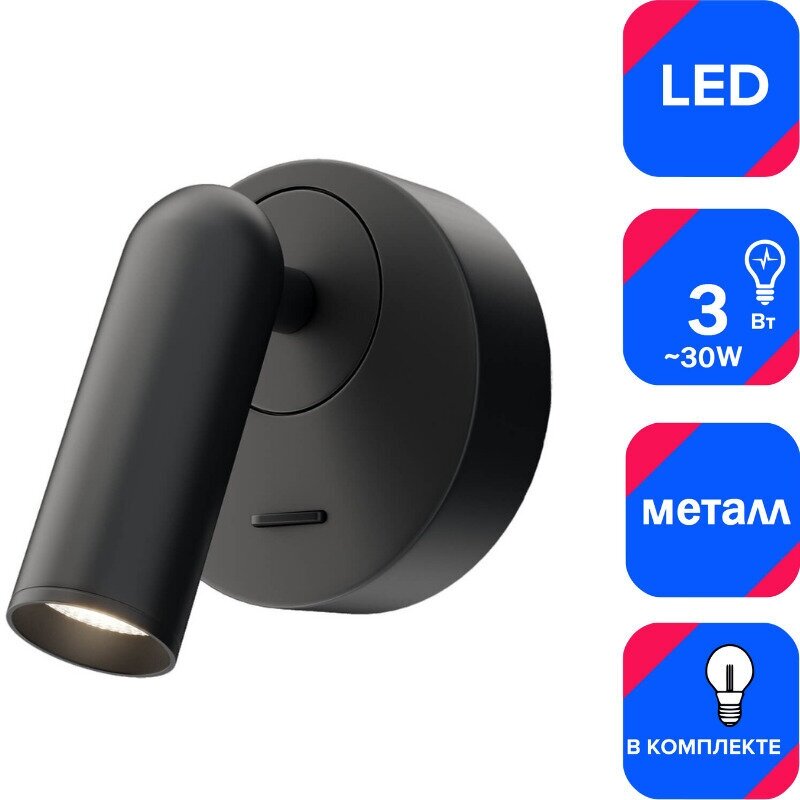 Настенный светильник светодиодный MAYTONI Mirax C038WL, 3 Вт, кол-во ламп: 1 шт., цвет арматуры: черный, цвет плафона: белый