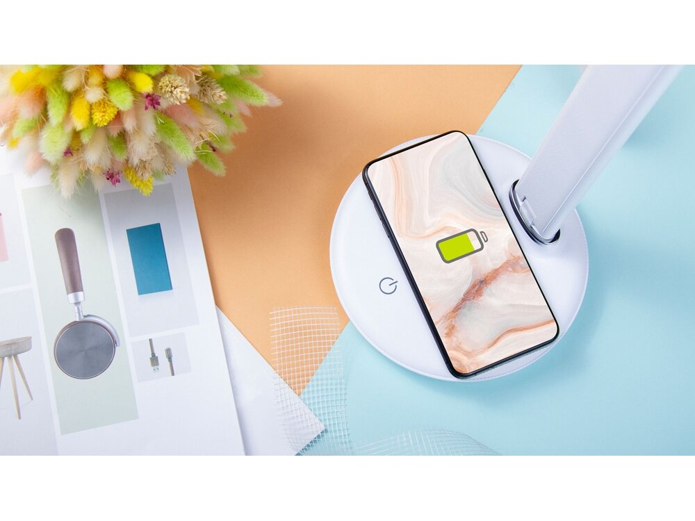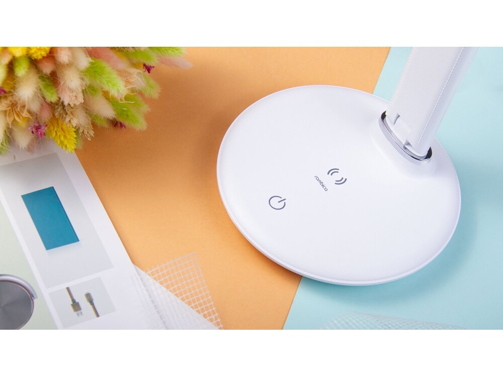 Светильник настольный с беспроводной зарядкой Rombica LED FAROS, 500Лм, 10 Вт, до 6000K, Qi, сенс. упр, белый