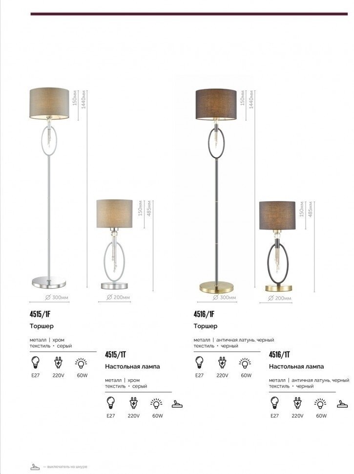 4515/1T NEOCLASSI LN20 179 хром, серый Настольная лампа E27 60W 220V SANTIAGO