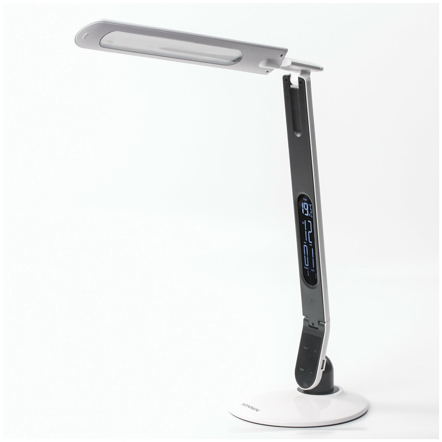 Светильник настольный Sonnen BR-898A, на подставке, светодиодный, 10 Вт, часы, календарь, термометр, белый