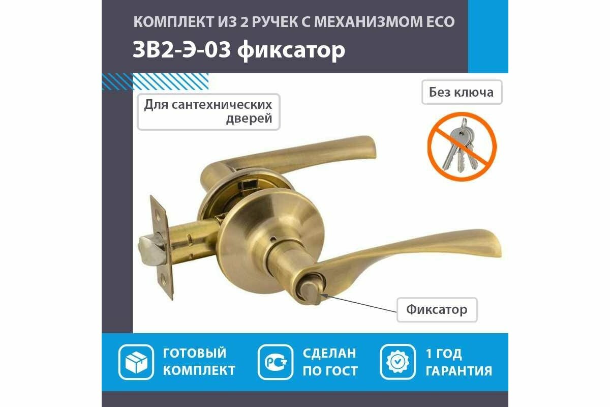 Ручки с защелкой межкомнатные Нора-М ЗВ2-Э-03 фиксатор - Старая медь