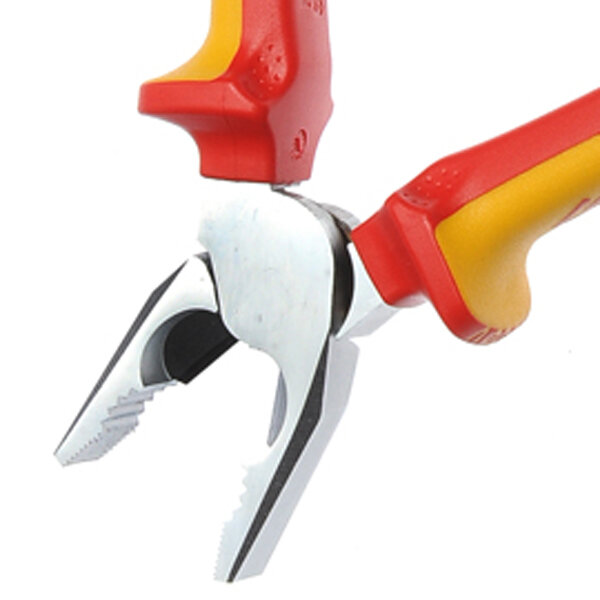 Плоскогубцы комбинированные VDE 1000V, рез: твёрдая проволока Ø 2.8 мм, рояльная струна (HRC 59) Ø 2.2 мм, кабель Ø 13 мм (25 мм²), L-200 мм, диэлектрические, хромированные, 2-компонентные рукоятки, KN-0206200 knipex