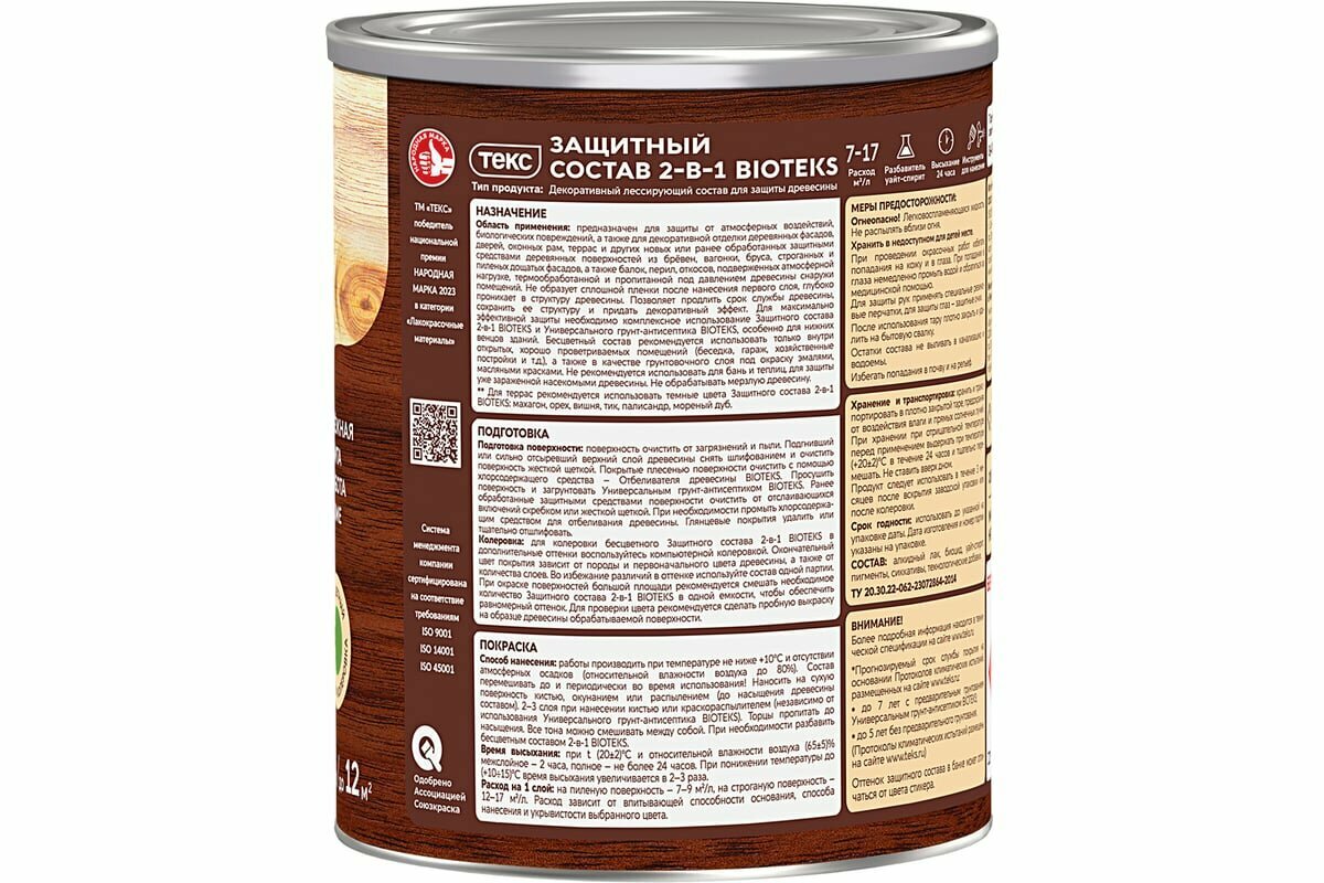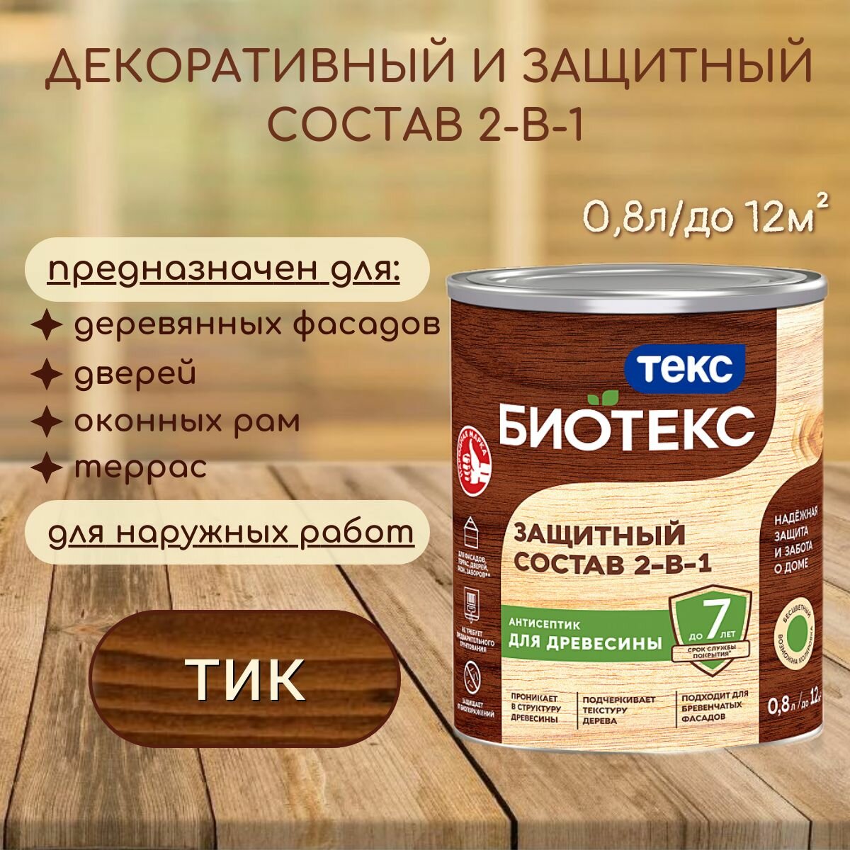 Защитный Состав 2-в-1 Текс Bioteks 0.8л Сосна, не Требует Предварительного Грунтования для Наружных Работ / Текс Биотекс.