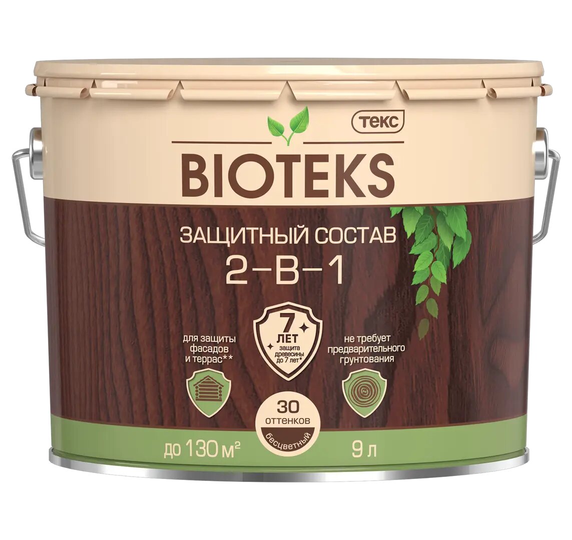 Текс BIOTEKS / Биотекс защитный состав 2-в-1 для наружных работ, орех (9 л)