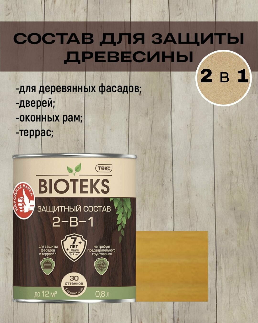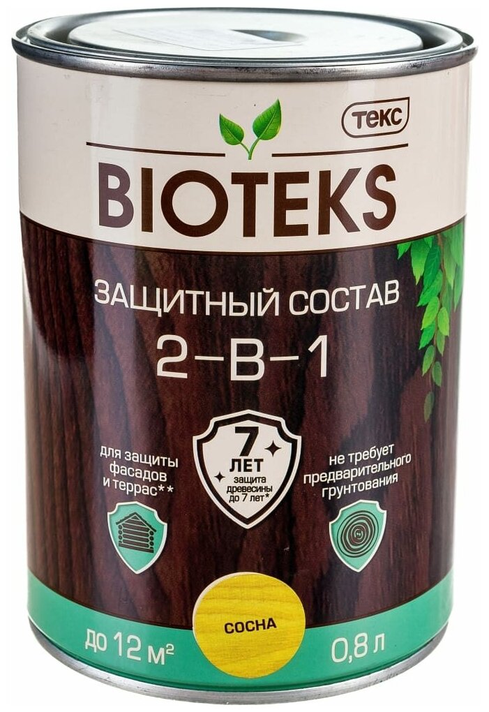 Защитный Состав 2-в-1 Текс Bioteks 0.8л Сосна, не Требует Предварительного Грунтования для Наружных Работ / Текс Биотекс.