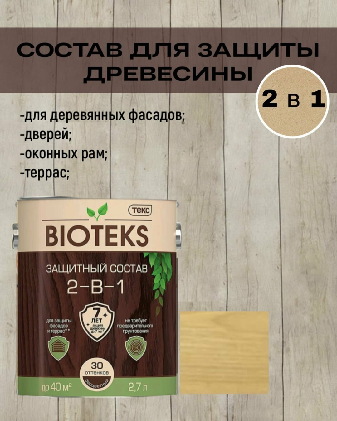 Купить Защитный лессирующий состав для древесины 2 в 1 Bioteks (2,7л) бесцветный