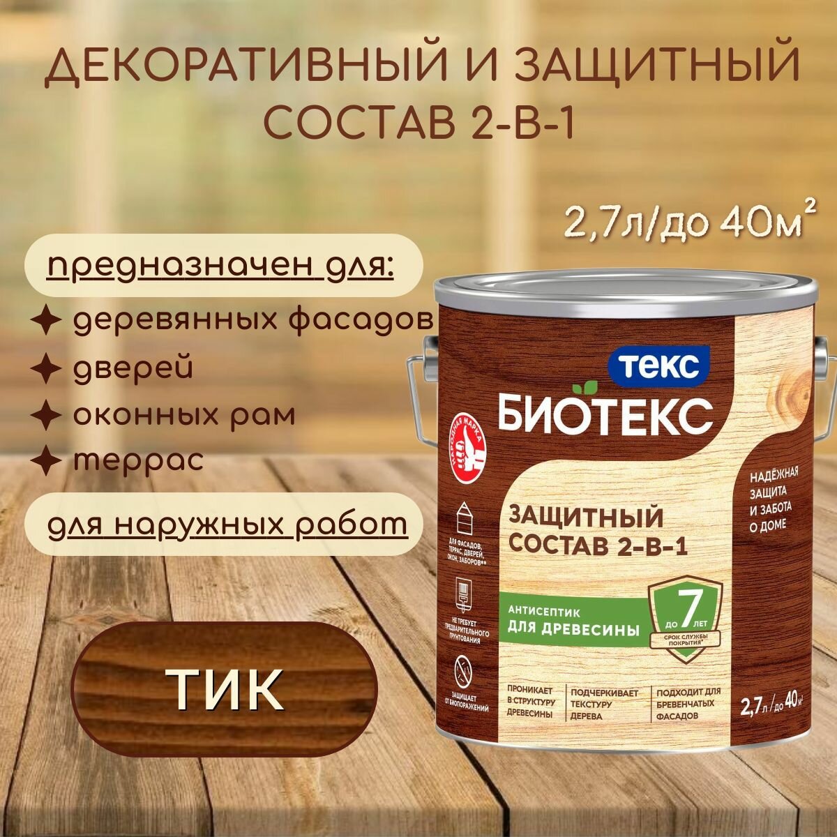 Защитный Состав 2-в-1 Текс Bioteks 2.7л Орех, не Требует Предварительного Грунтования для Наружных Работ / Текс Биотекс.