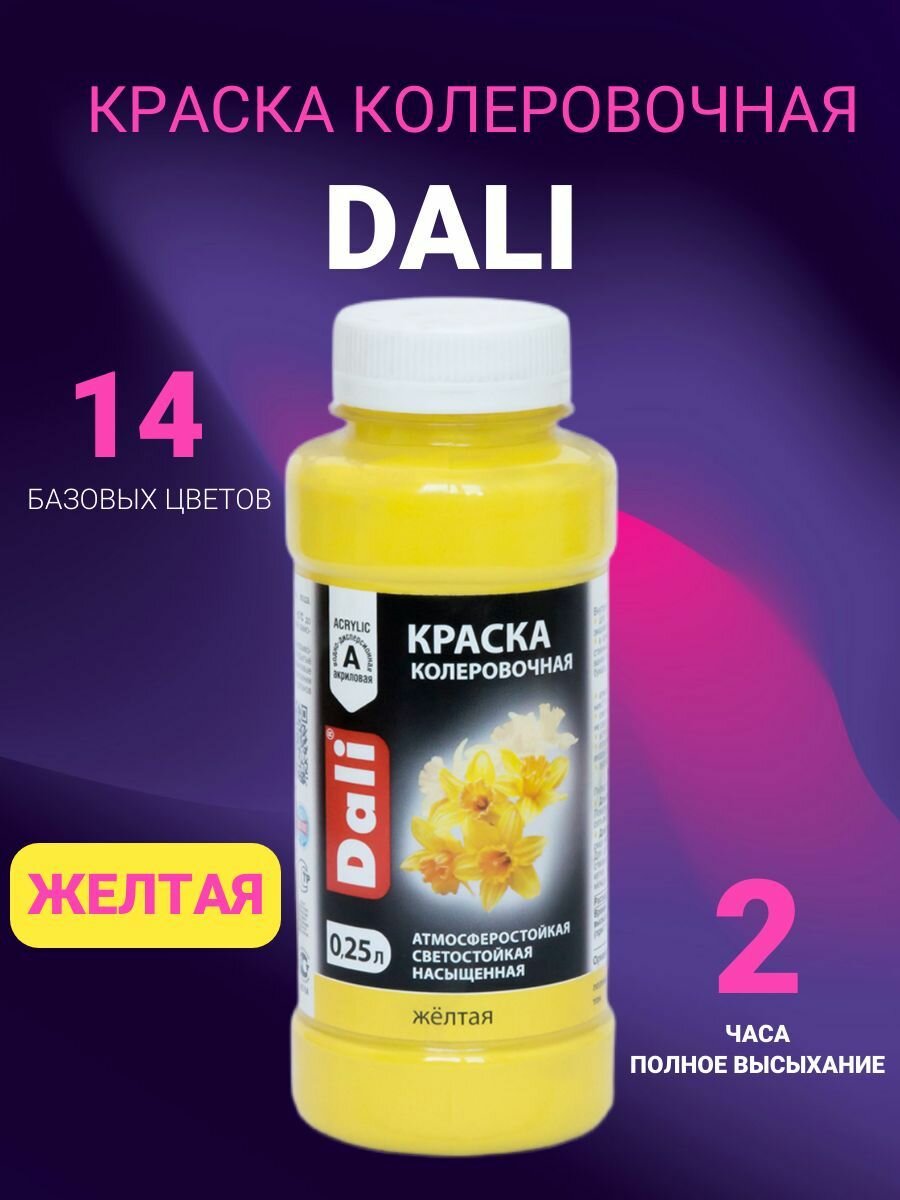 Краска Колеровочная Dali 0.25л Желтый Акриловая / Дали.