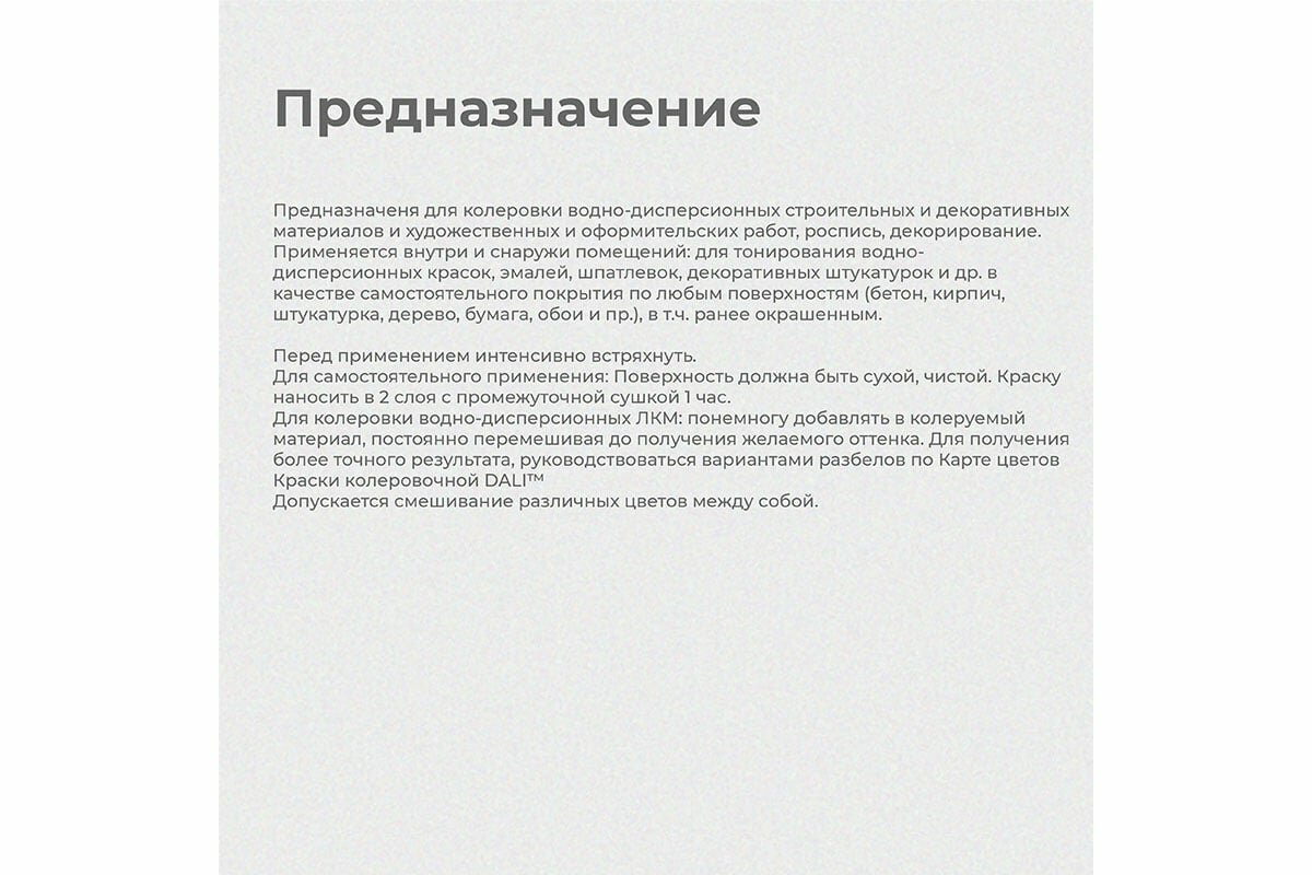 Ниже Вы можете прочитать отзывы на Краска акриловая, колеровочная Dali (0,25л) охра, ознакомится с подробными характеристиками, посмотреть интересные обзоры и фотографии на Краска акриловая, колеровочная Dali (0,25л) охра.