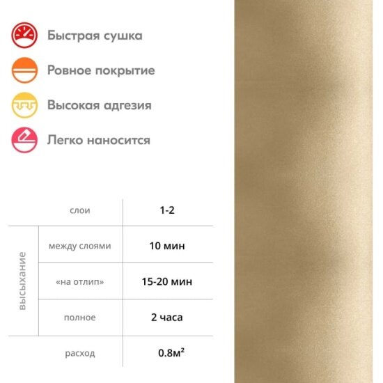 | Плюсы: | Быстро наносится, равномерно ложится |