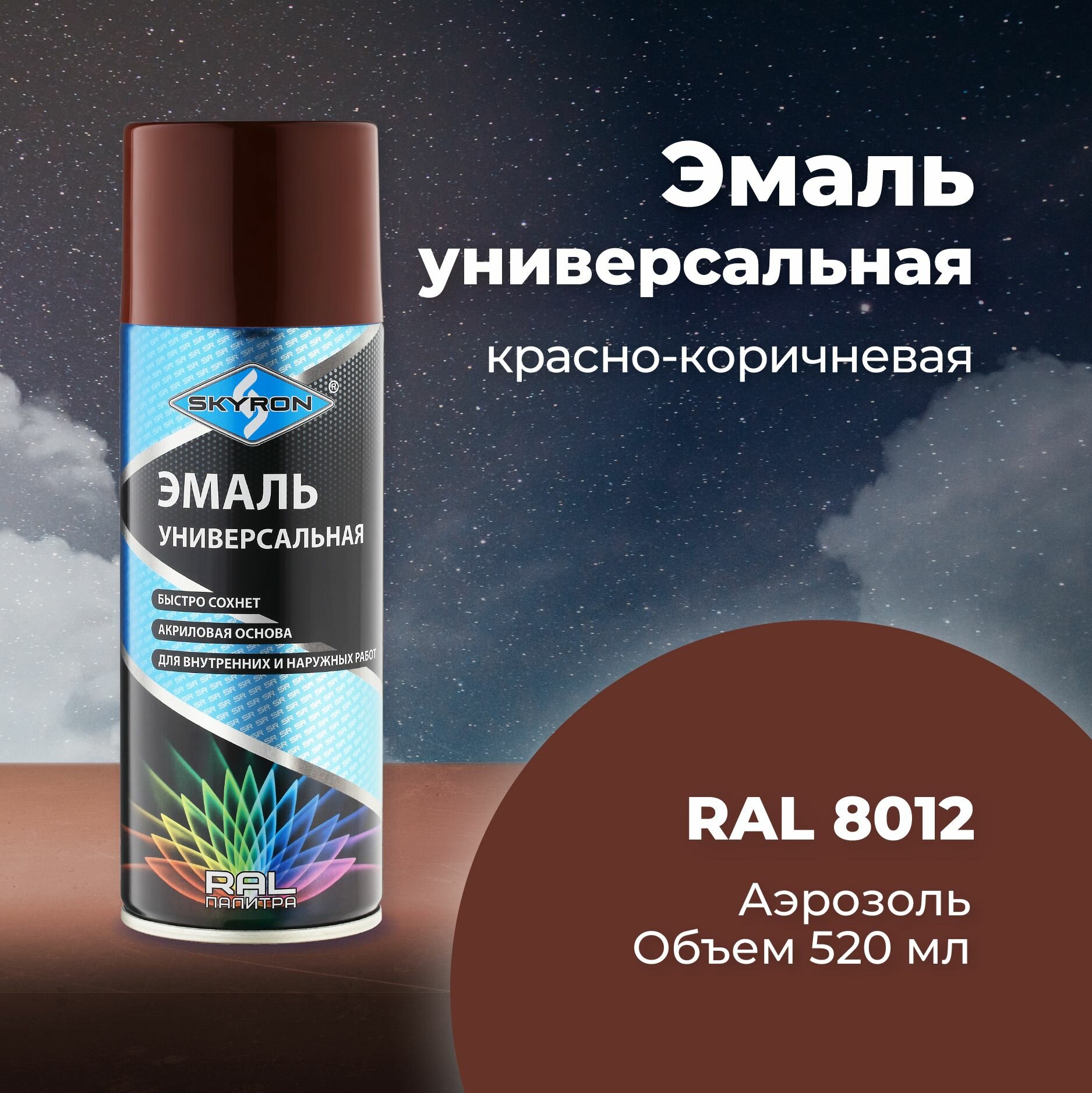 Эмаль универсальная акриловая SKYRON цвет:Красно-коричневый (RAL 8012). Аэрозоль 520мл (SR-18012)