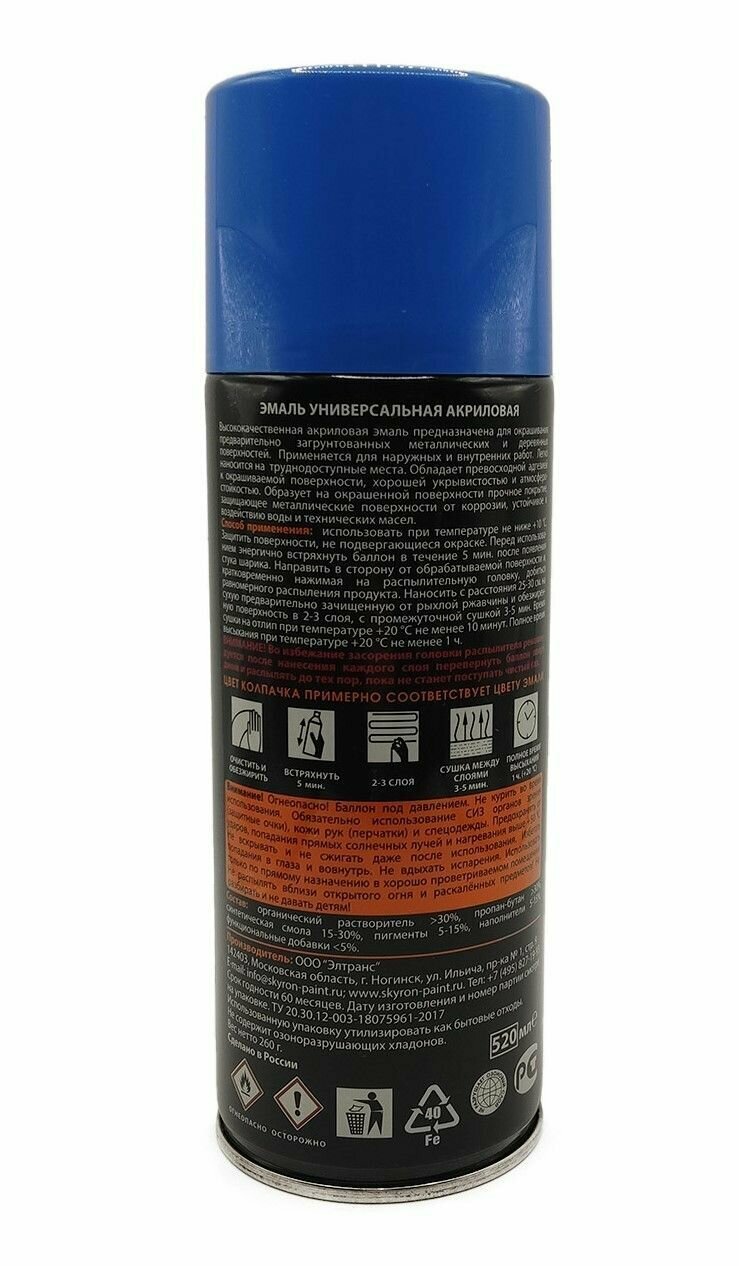 Краска Акриловая 520Мл - Ral 5002 Темно-Синяя Универсальная Эмаль, Аэрозоль SKYRON арт. SR-15002