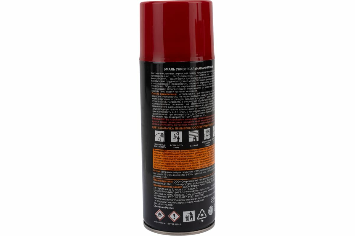 SKYRON Краска-спрей Красная акриловая (RAL 3020) (520мл) (SKYRON)