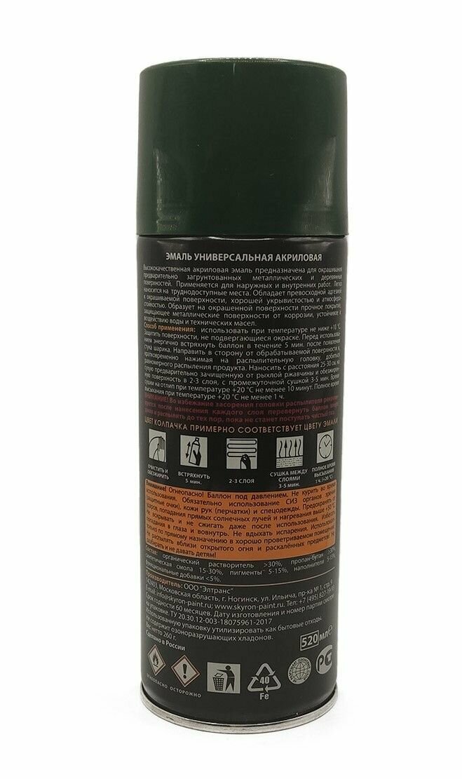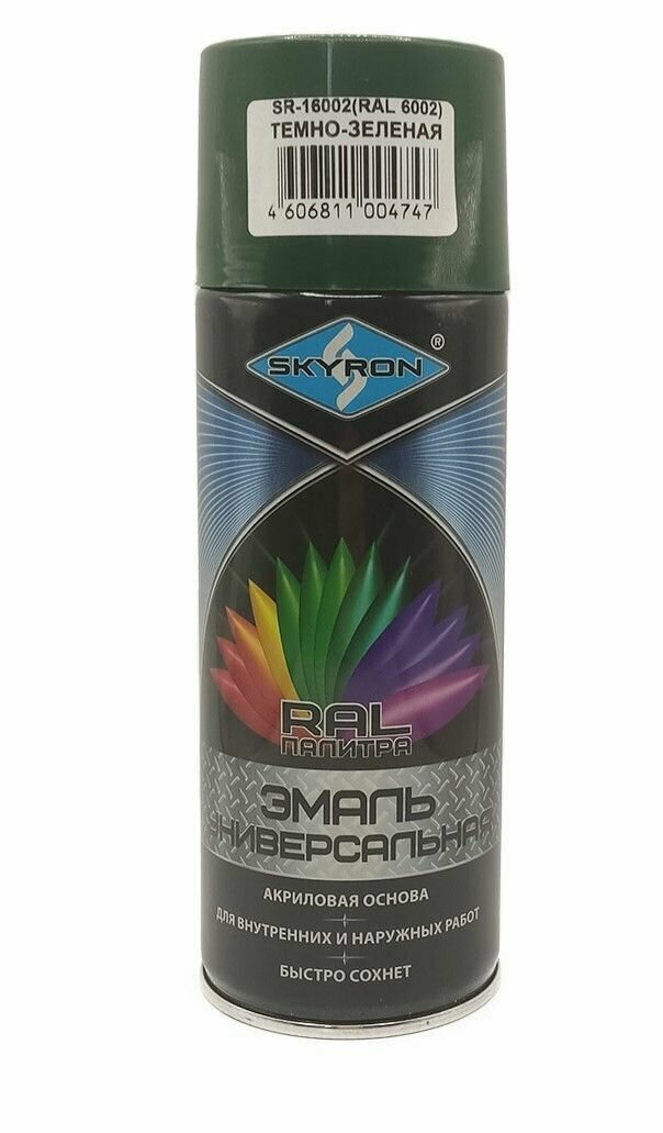 SKYRON SR-16002 Эмаль универсальная акриловая темно-зеленая (RAL 6002) аэрозоль 520 мл SKYRON SR-16002