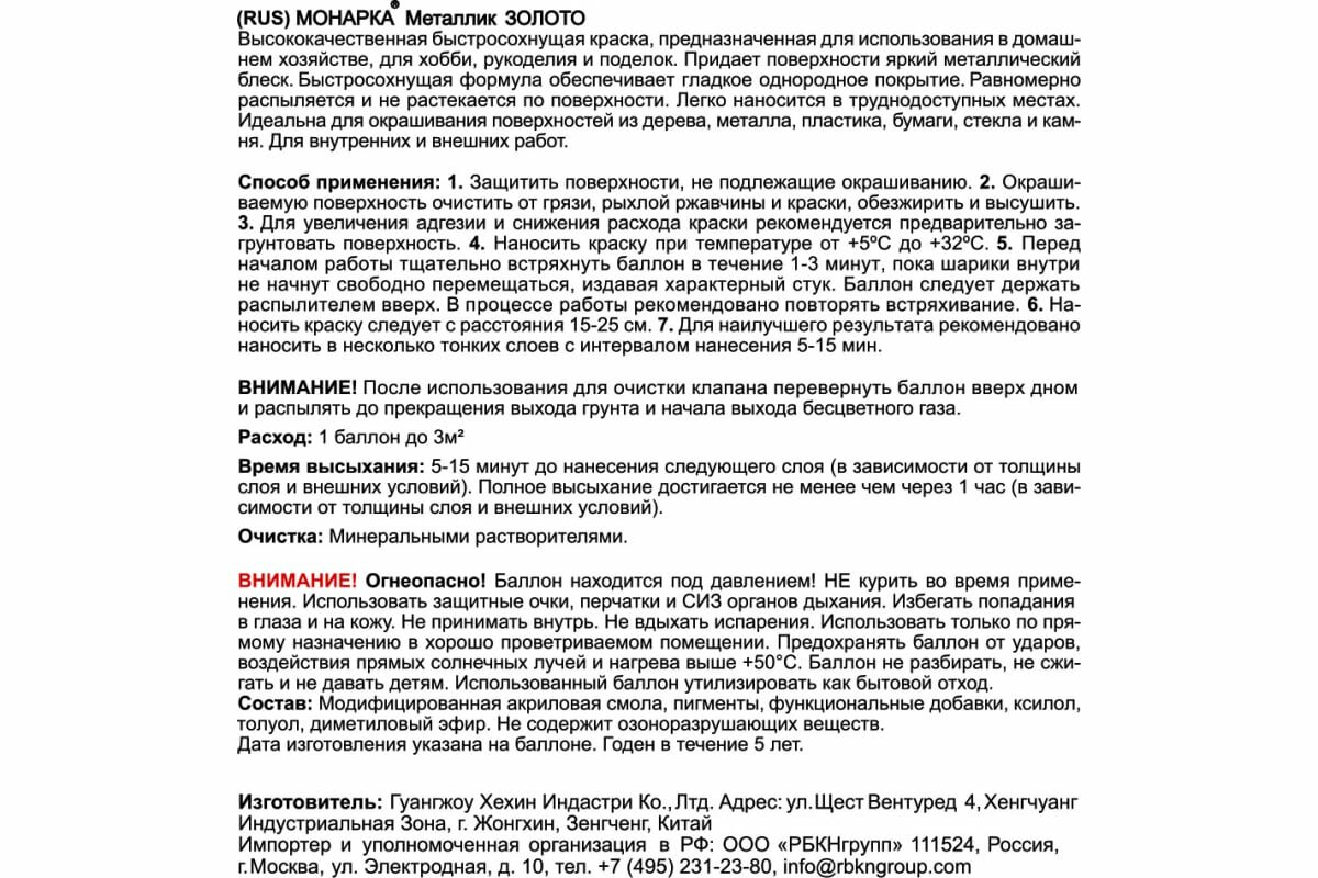 СохранитьКраска универсальная аэрозольная акриловая Eastbrand Monarca металлик яркое золото 520 мл. интересное: