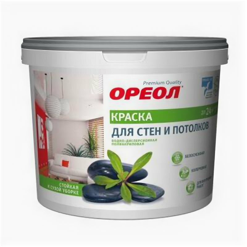 Краска для стен и потолков Ореол ВД (белоснежная; полиакриловая; для внутренних работ; 1.5 кг) 5384