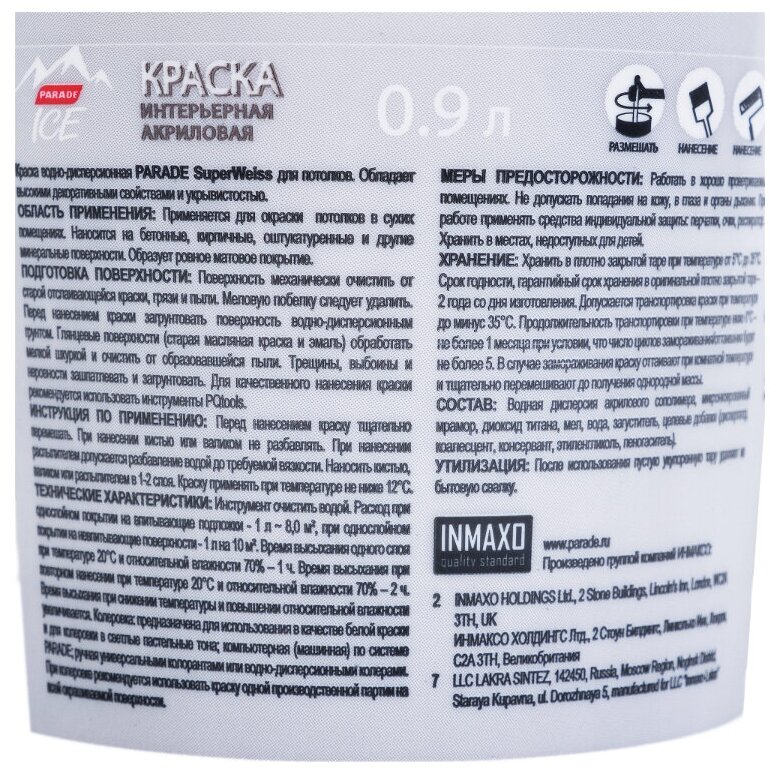 Краска для потолков Parade DIY SuperWeiss цвет белый 0.9 л интересное: