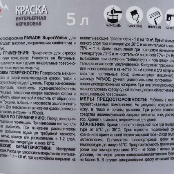 Краска для потолков Parade DIY SuperWeiss цвет белый 5 л интересное: