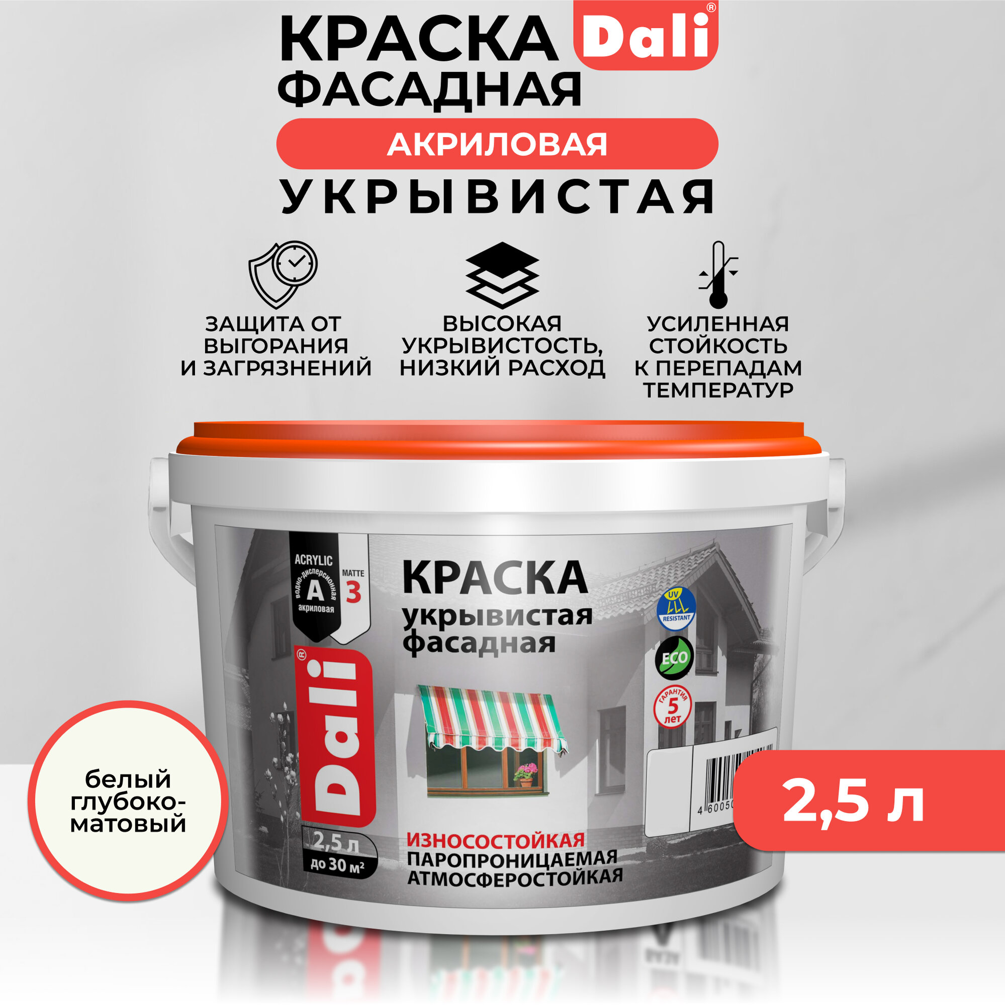 Краска фасадная укрывистая Dali, акриловая, глубокоматовая, белая, 2,5 л