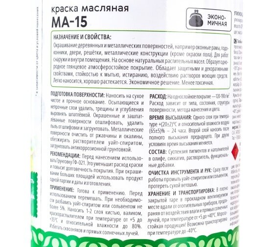 Краска масляная "Казачка" МА-15, глянцевая, цвет: зеленый, 0,9 кг.