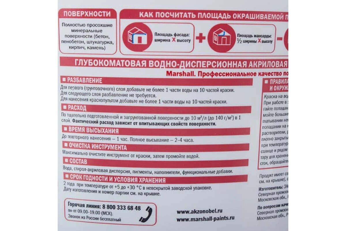 СохранитьКраска фасадная акриловая Marshall Maestro глубокоматовая база BW 2,5 л. интересное: