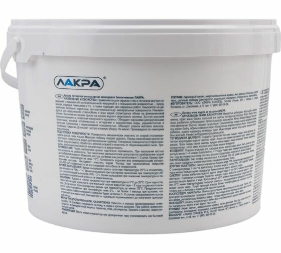 Краска в/д Лакра лат моющая бел мат 3кг