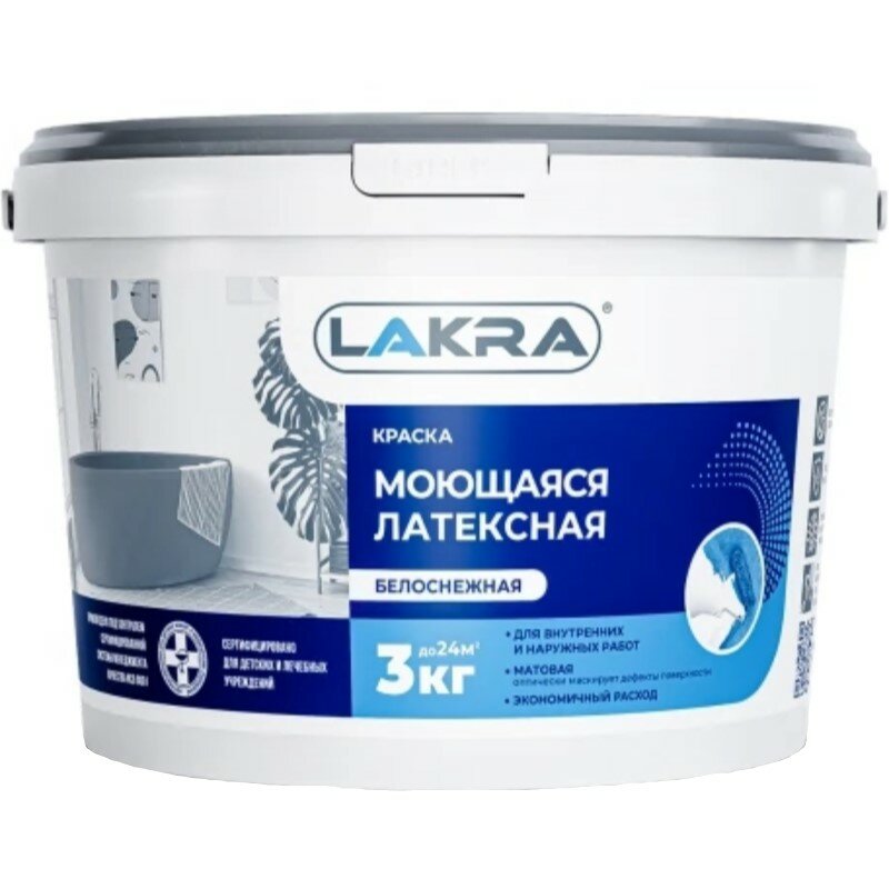 Купить Краска латексная Лакра Для стен и потолков моющаяся матовая белый 3 кг